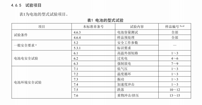 國標(biāo)GB40165-2021測試試驗項目如下圖: